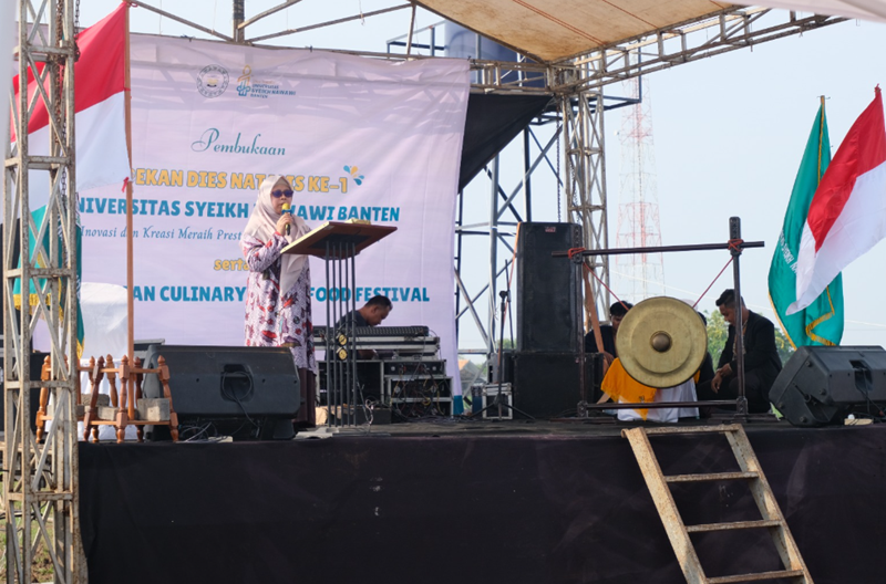 Banten – Rektor Universitas Syeikh Nawawi Banten (USNB) Hj. Siti Haniatunnisa, LLB., MH. membuka pekan Dies Natalis USNB ke-1 serta Festival UMKM dan Kuliner Makanan Halal Asia di Desa Jenggot, Sabtu, 7 Desember 2024.